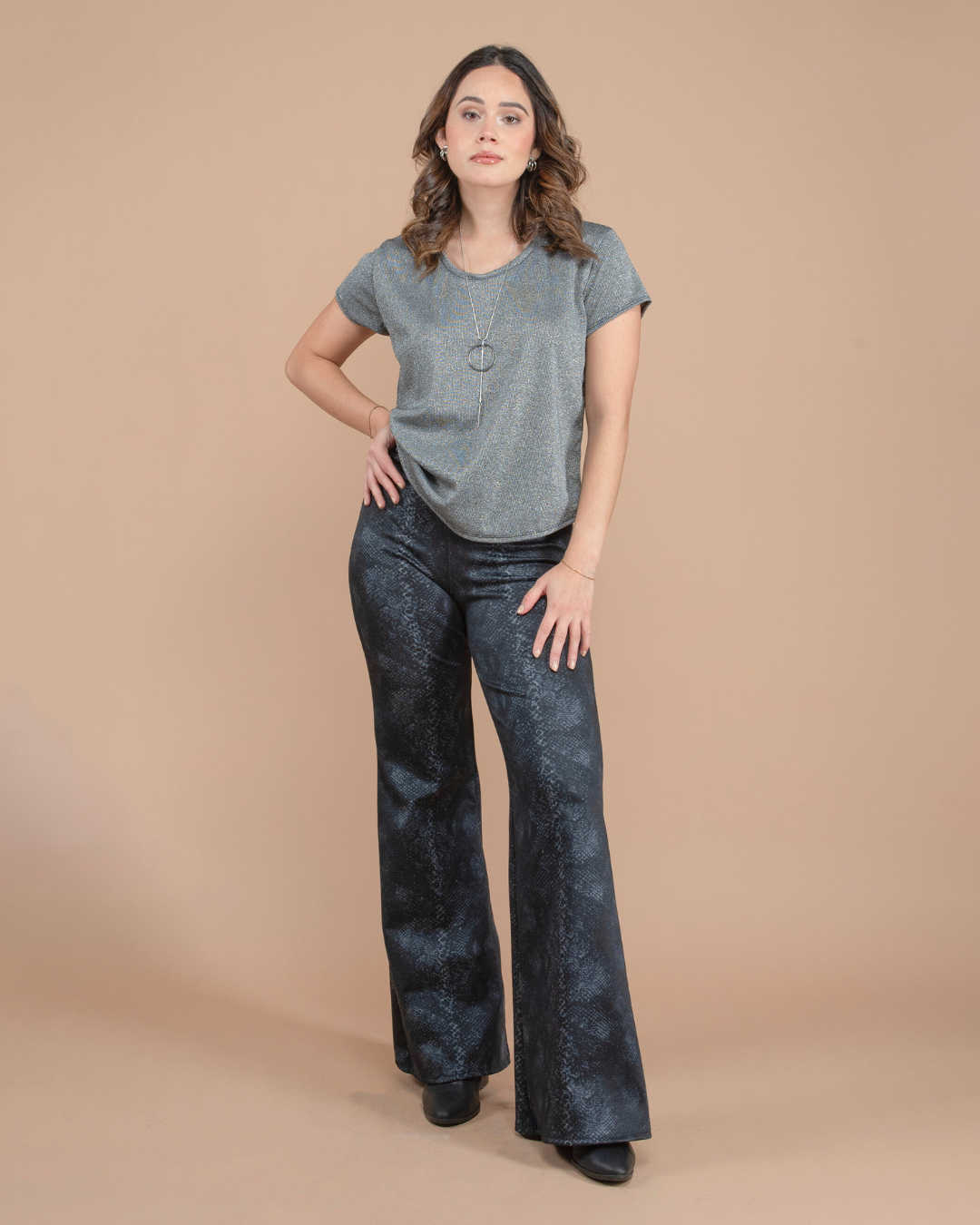 Pantalón de tela gamuzada elasticidad estampada, es elasticado, ligera y atemporal, lo puedes...